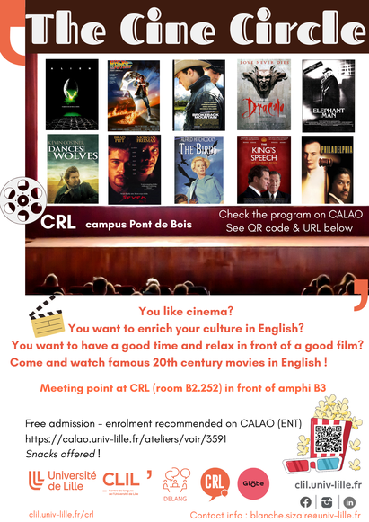 You like Cinema?  You want to enrich your culture in English? You want to have a good time and relax in front of a good film? Come and watch famous 20th century movies in English!