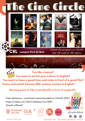Le "Ciné Circle" in English est de retour sur le campus Pont de Bois dès le vendredi 03.10.2025 de 13h à 15h30 .???? (des séances se dérouleront le vendredi à 13h ou le mardi à 17h).